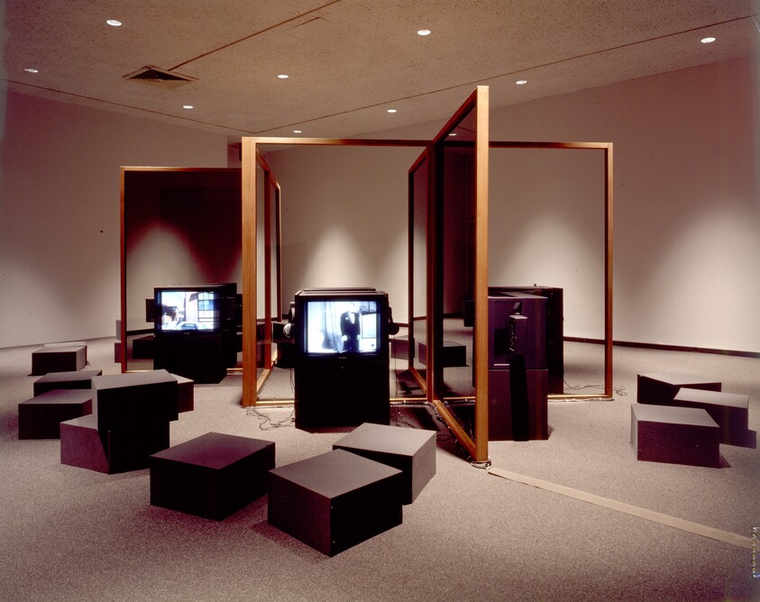Graham disavowed Conceptual Art as a term, and identified with no movement or creed, though his work with video, installation, photography, architecture, and text may be considered examples of the genre. He exhibited the work of his peers Donald Judd, Sol LeWitt, and Robert Smithson at the John Daniels Gallery in New York, where he was briefly the curator and director, before showing alongside these and many other Minimalists and Conceptualists during the 1960s and 70s. In the 1980s, Graham became an active observer of New York’s punk and experimental music scenes, collaborating with Sonic Youth and befriending Glenn Branca. His book and film essay Rock My Religion of 1983-1984 linked contemporary music groups to the ecstasy of religious communities. His pavilion structures of glass, steel, and mirrors dominated the latter half of his career, from the 1990s.