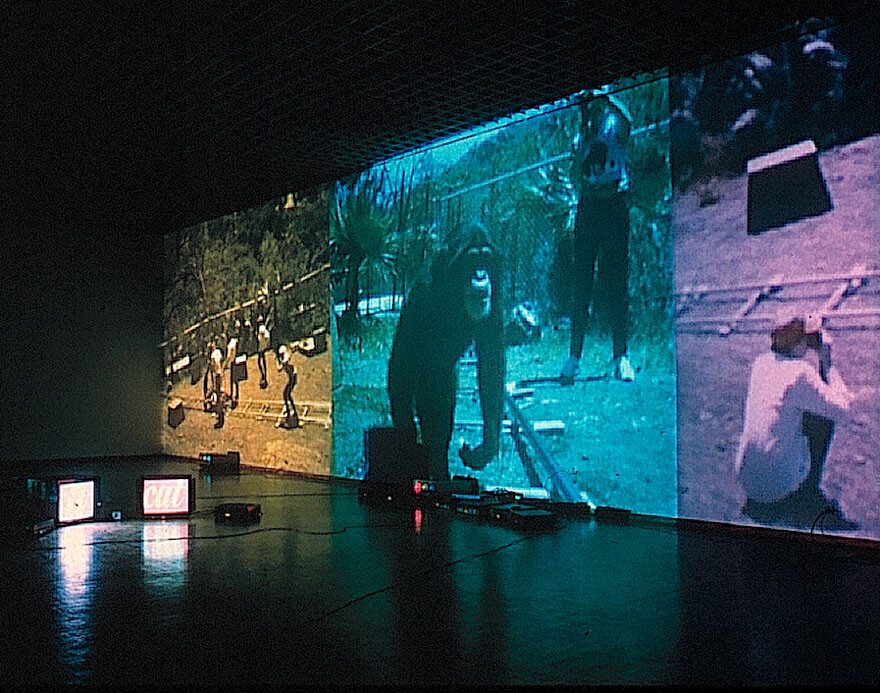 Since the early 1990s Diana Thater has been producing complex video installations— nonnarrative moving images in layered, room-sized projections and architectural interventions—that investigate the relationship of time and space to the subjective experience of viewing. Thater’s approach developed from an engagement with media theory, literature, science, art history, Hollywood cinema, and experimental filmmaking, all of which she studied at New York University and, later, at the Art Center College of Design in Pasadena, California, where she received her MFA. She also has cited a deep interest in the notion of beauty as an underlying principle for much of her art making, as reflected in her use of video imagery drawn from the natural world—primarily plants, animals, and the solar system.