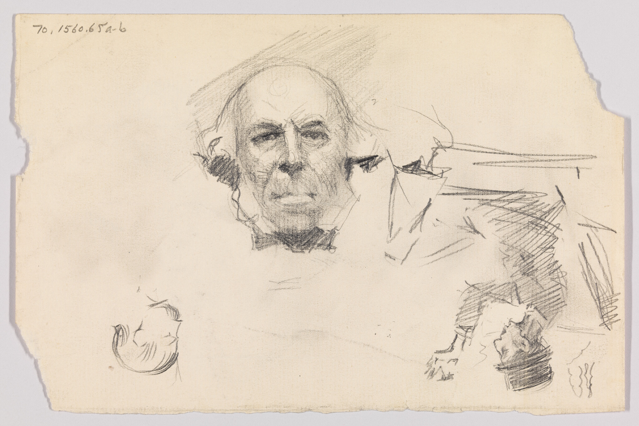 Verso: (Three Studies: Bald Man, Man in Hat, and Man's Head)