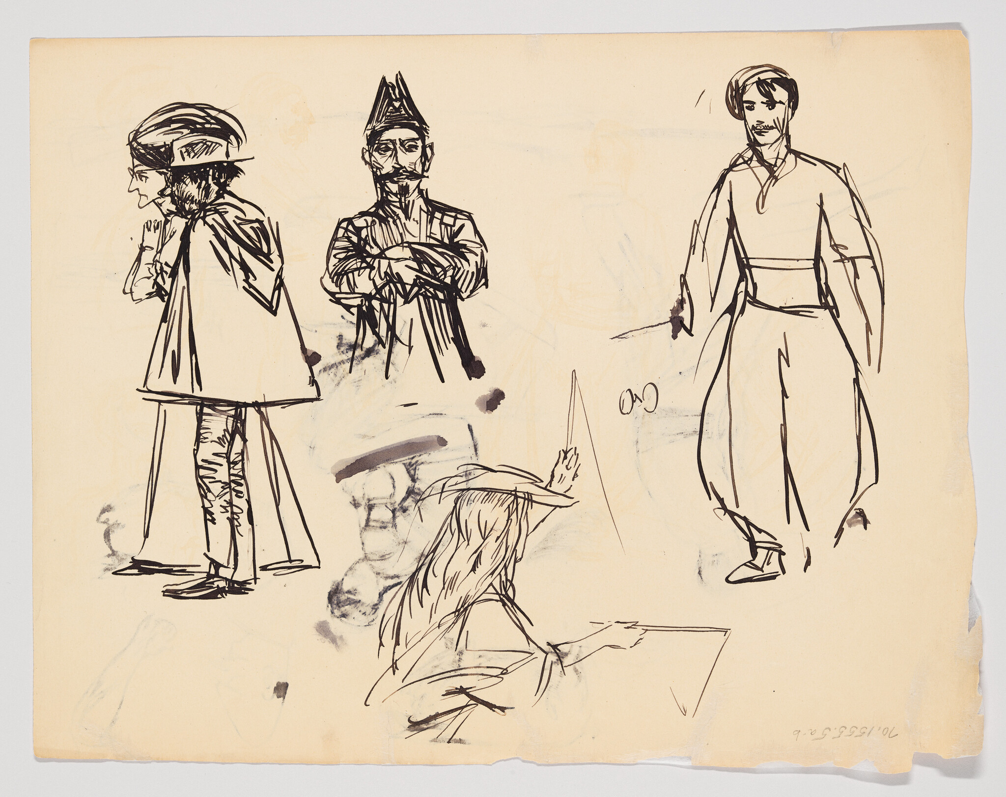 (Sketches of Seated Men, Boats, Pigs, Feet, Arm, and Legs)