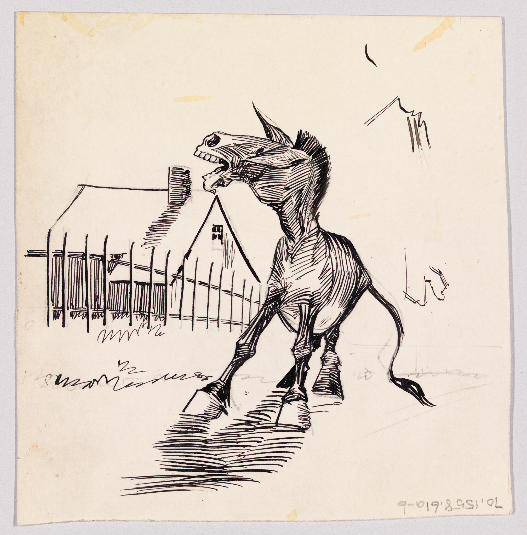Verso: (Study of a Braying Horse in Landscape with House and Fence)