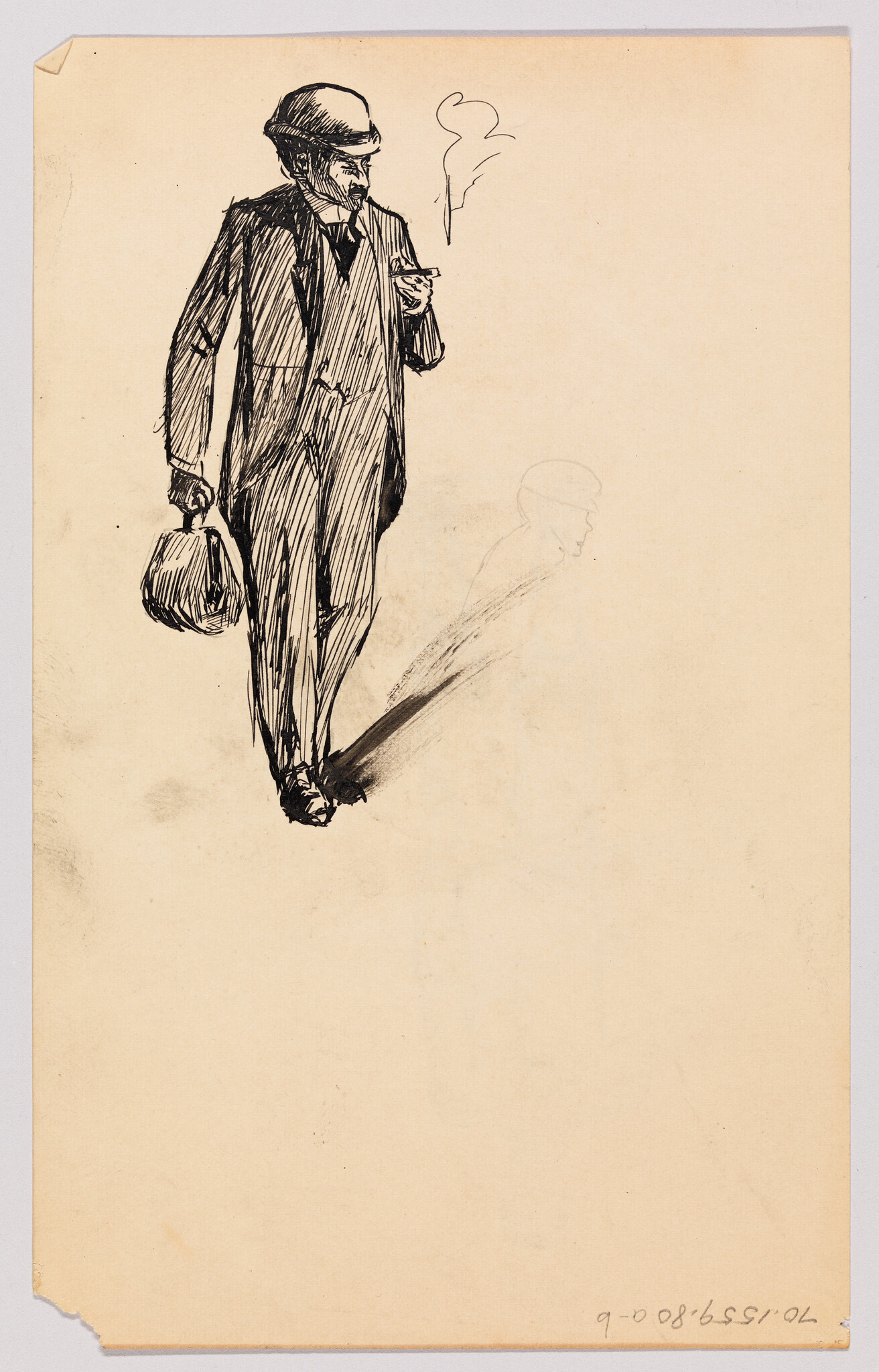 Verso: (Study of a Man in Suit and Hat with Cigarette and Briefcase)