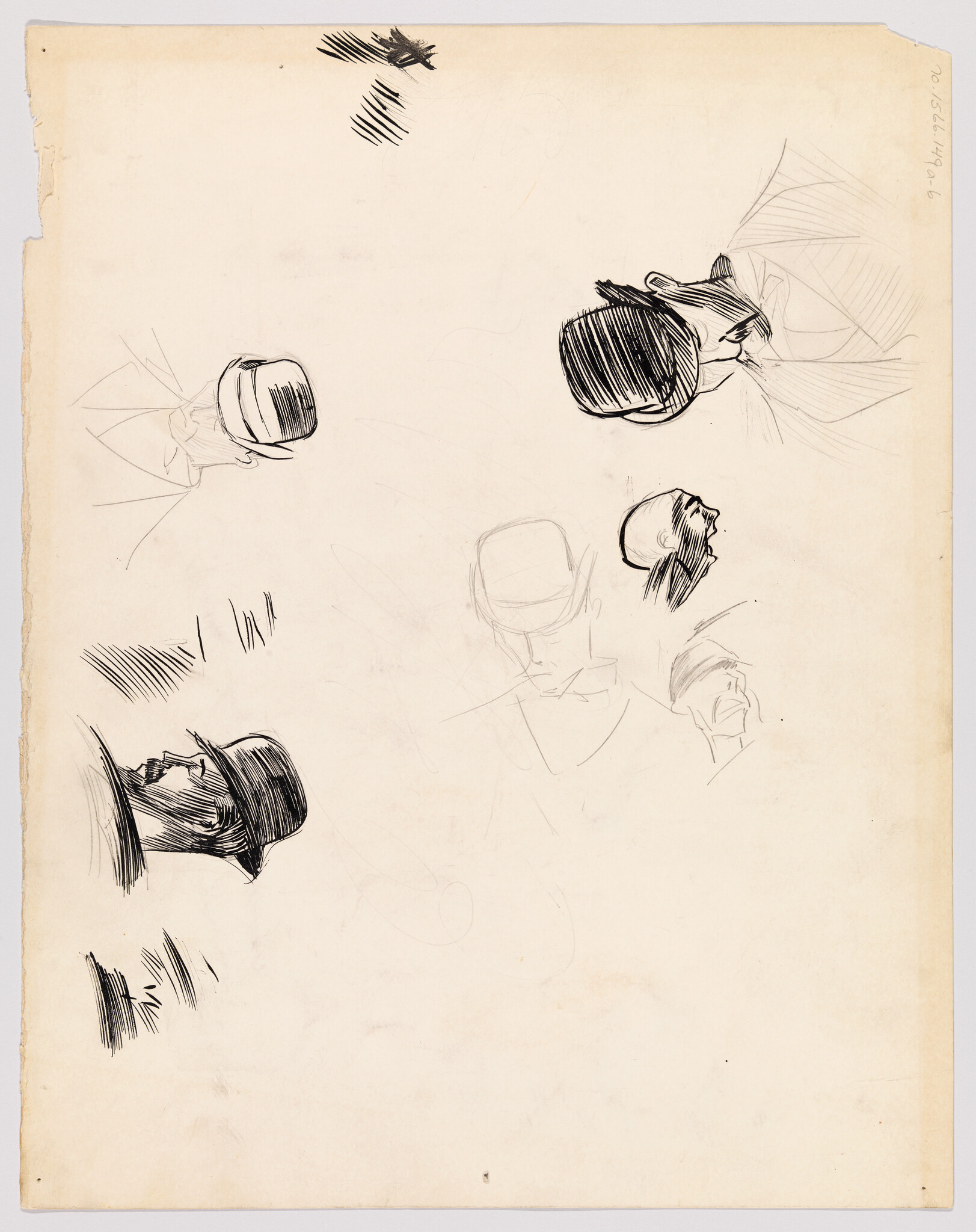 (Sketches of Men's Heads with Hats)