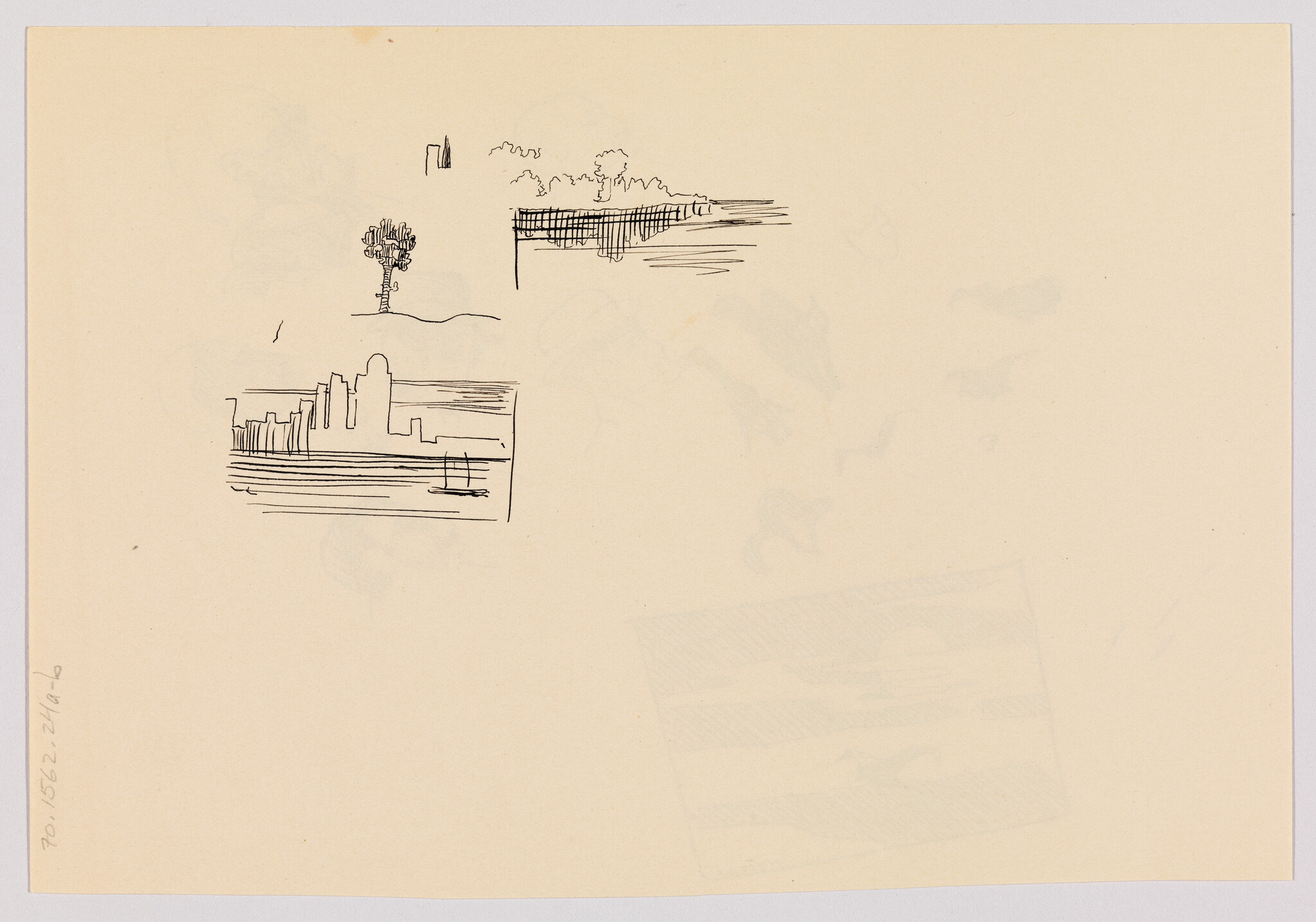 Verso: (Three Studies: View of City Skyline, Landscape with Tree Line, and Tree)