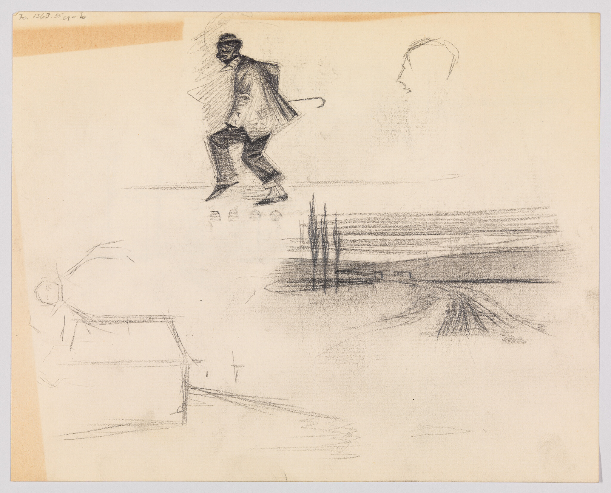 (Sketches of Dancing Clown, House, Heads, and Landscape with Road)