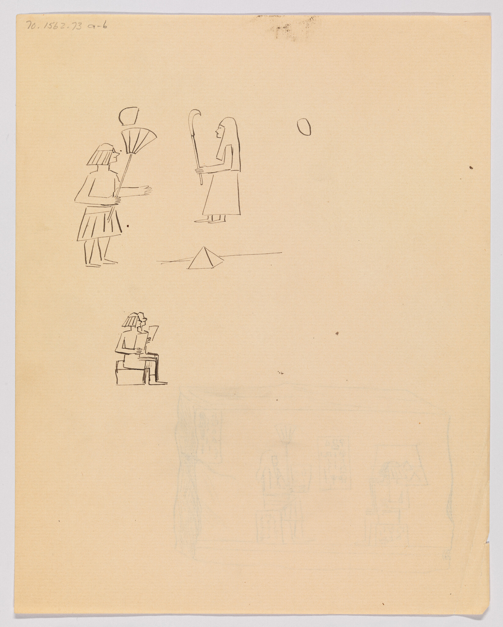 Verso: (Sketches of Egyptian Figures and Pyramid)