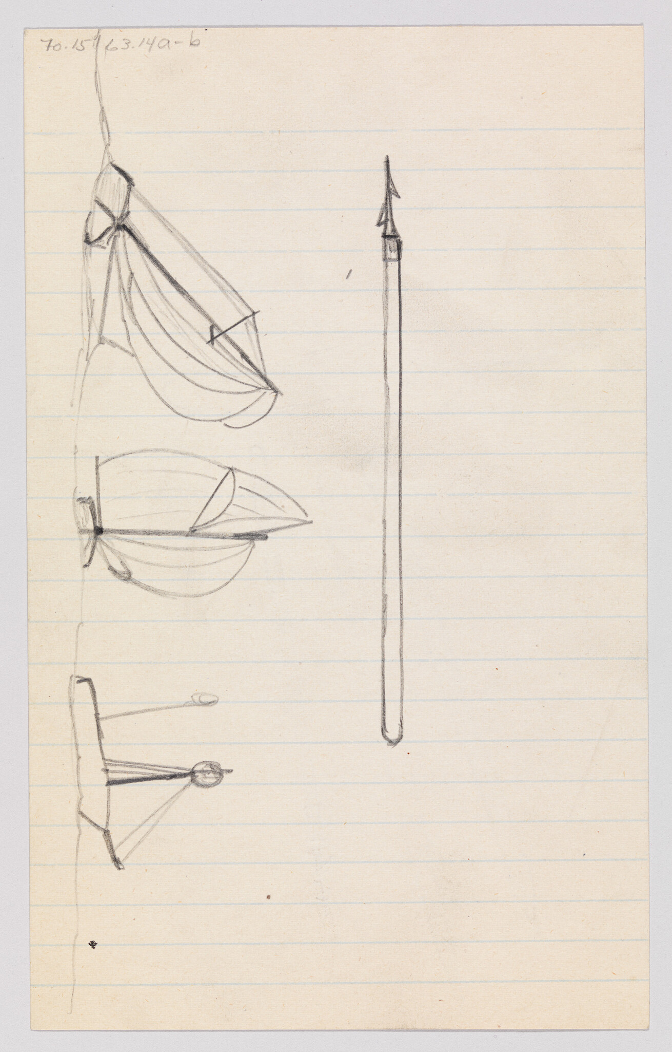 Verso: (Sketches of Three Sailboats and a Harpoon)