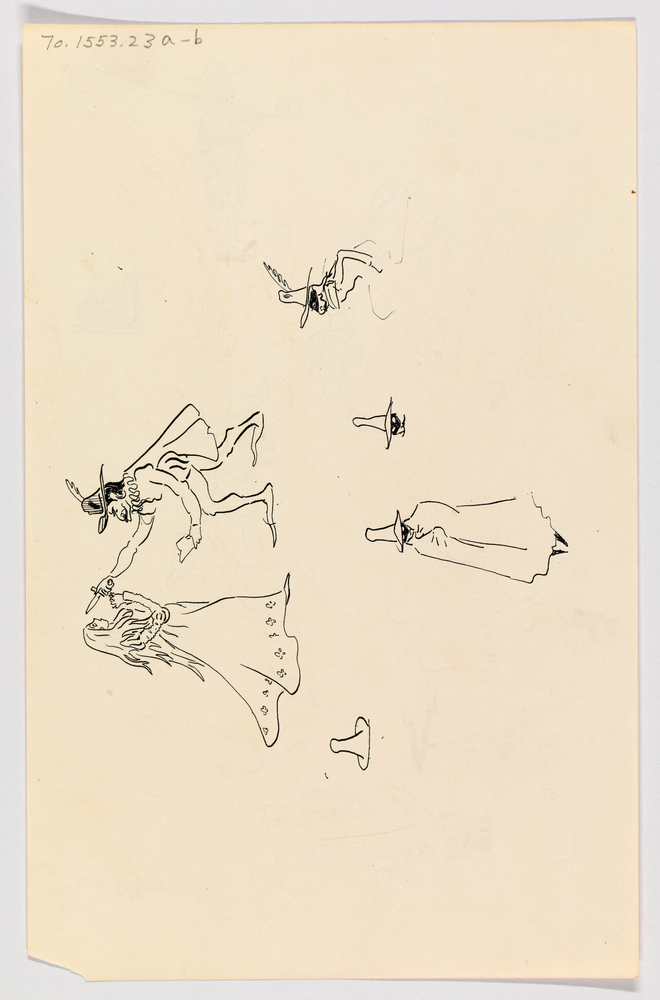 Verso: (Sketches of Man Robbing Woman at Knifepoint and Masked Men)