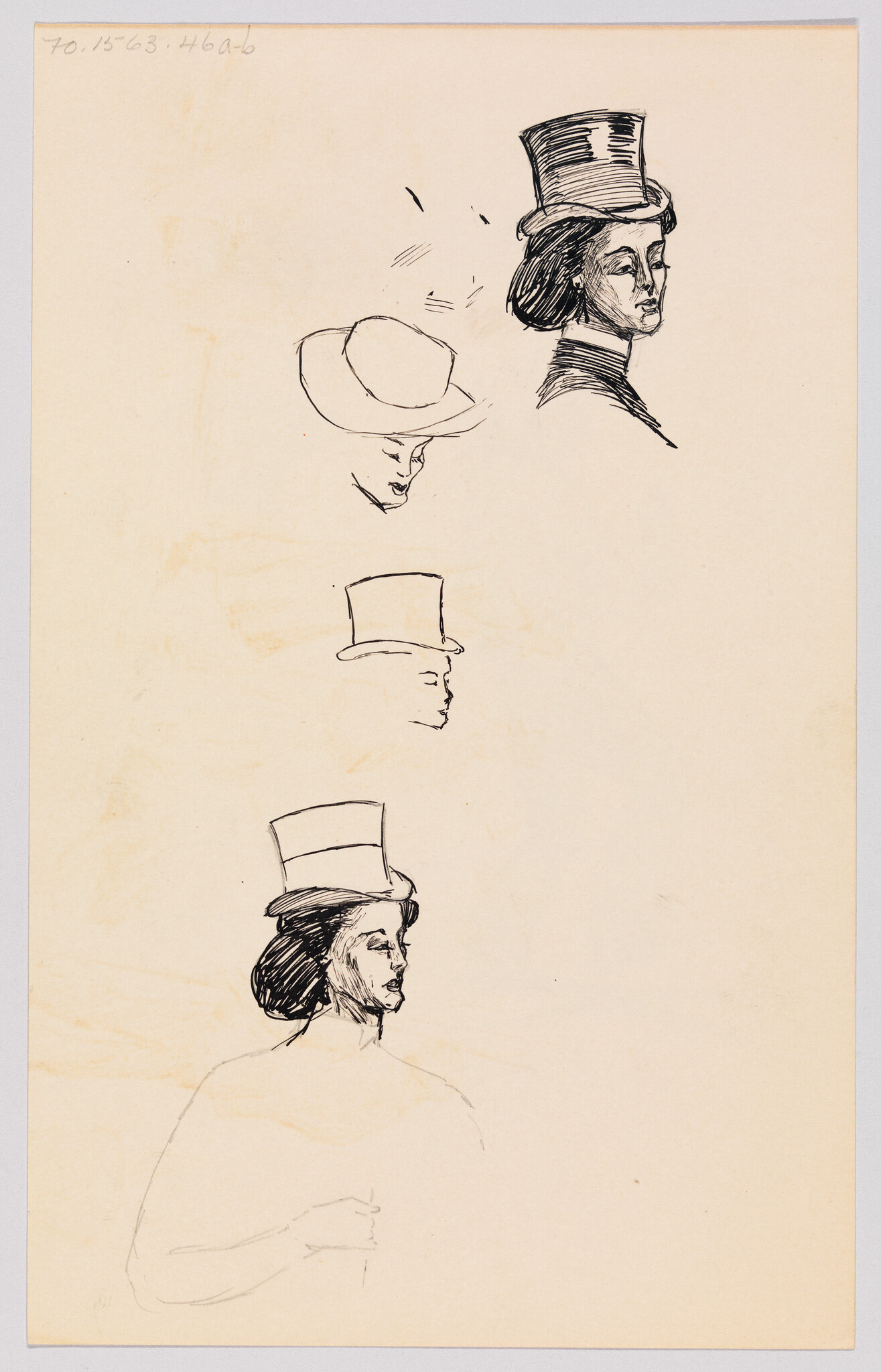 Recto: Sketches of Men in Cowboy Hats Woman's Face, Stove and Hat)