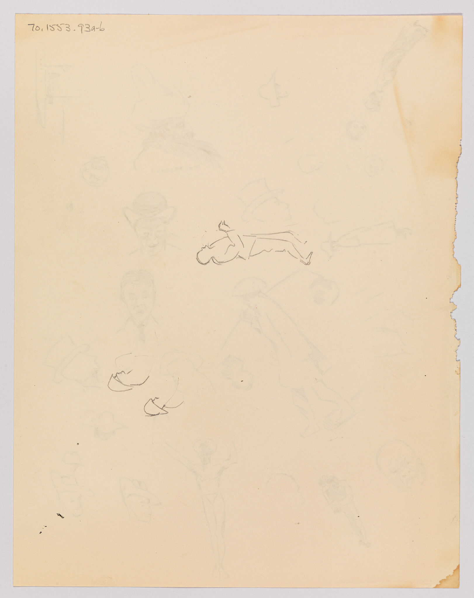 Verso: (Sketches of Figure and Two Heads)