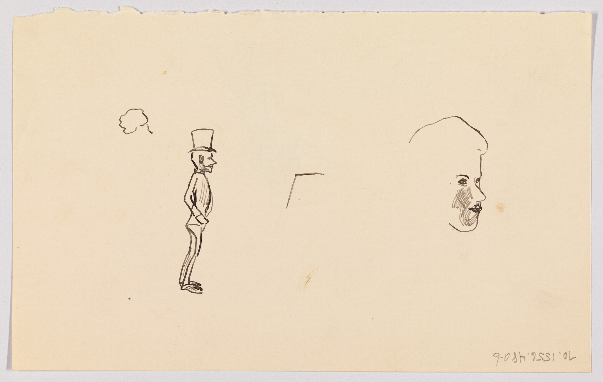Verso: (Two Studies: Standing Man in Top hat and Woman's Face)