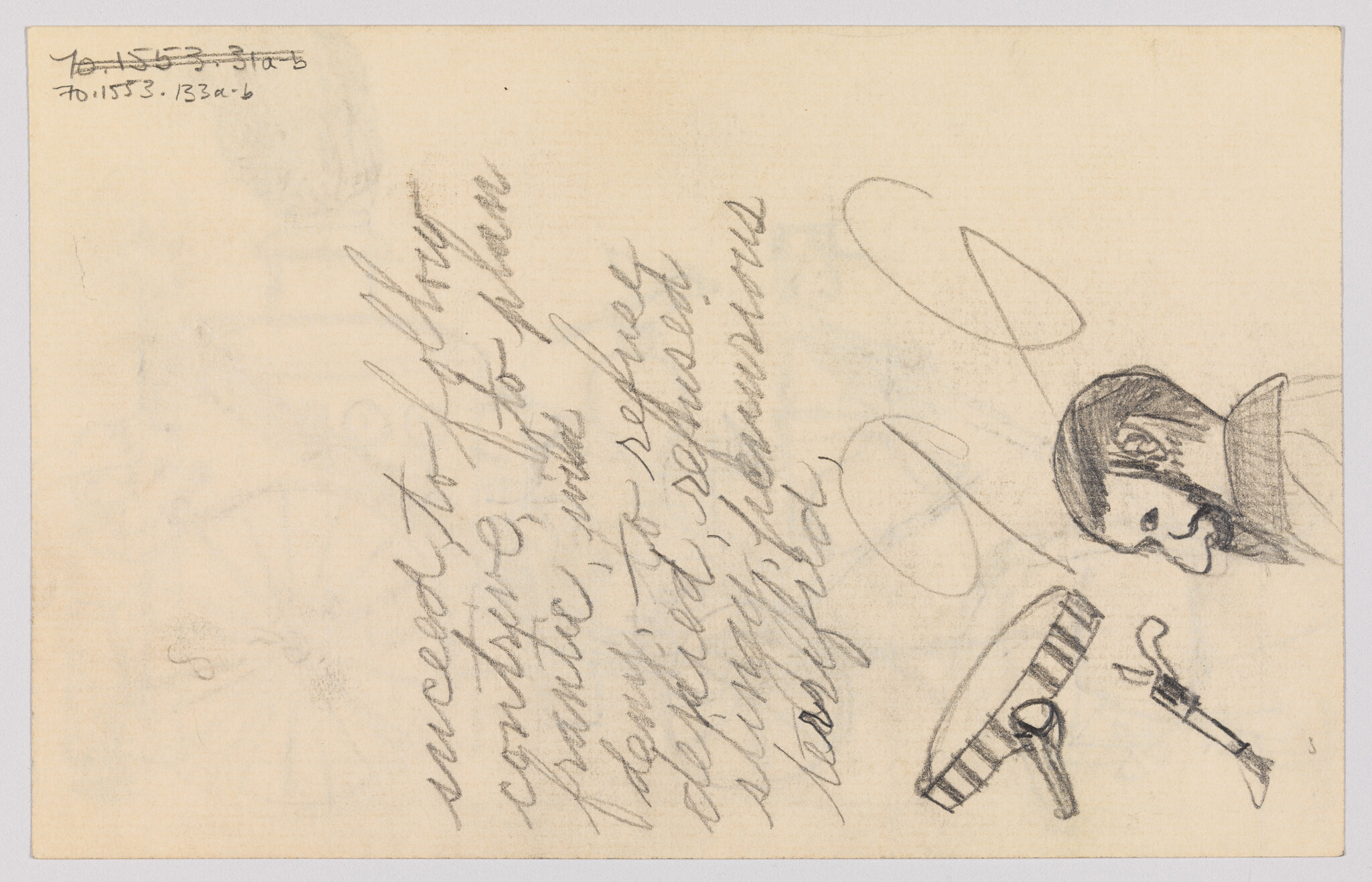 (Study of a Bearded Man, Pistol, Holster, and Inscriptions)