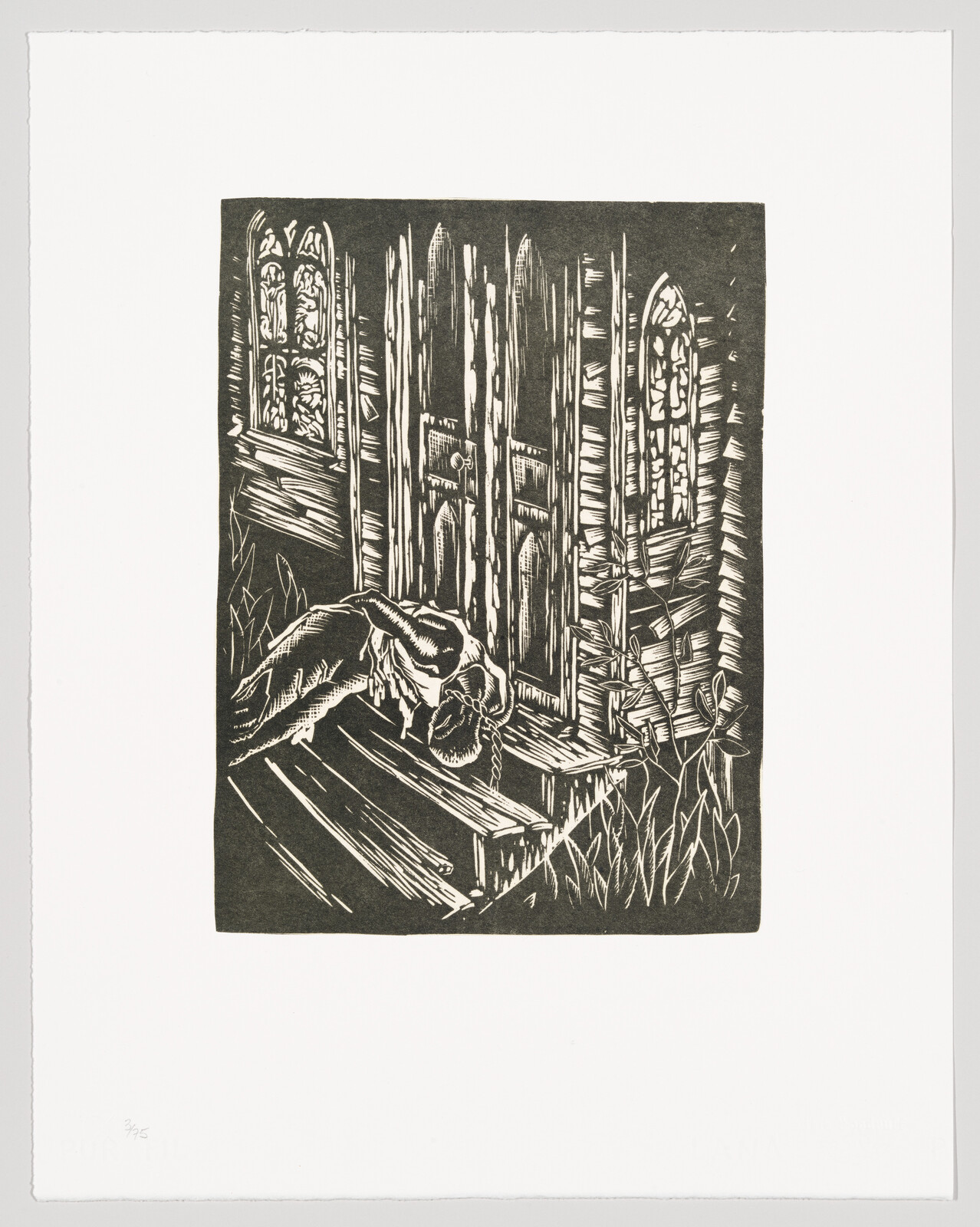Installation view of Edges of Ailey (Whitney Museum of American Art, New York, September 25, 2024-February 9, 2025). From left to right: Romare Bearden, “The Buzzard and the Snake (The Conjur Woman)” from the Bayou Fever series, 1979; Romare Bearden, “Earth and the Magic Drummer” from the Bayou Fever series, 1979; Romare Bearden, “The Swamp Witch, Blue-Green Lights and Conjur Woman” from the Bayou Fever series, 1979; Romare Bearden, “The Conjur Woman” from the Bayou Fever series, 1979; Romare Bearden, “Star (Star from the Heavens)” from the Bayou Fever series, 1979; Romare Bearden, The Magic Root (Spotted Deer and the Father)” from the Bayou Fever series, 1979; Romare Bearden, “Past-Present-Future and Beautiful Dreams” from the Bayou Fever series, 1979; Romare Bearden, “Wisdom” from the Bayou Fever series, 1979; Romare Bearden “The Emperor of the Golden Trumpet” from the Bayou Fever series, 1979; Romare Bearden, “All Come Back” from the Bayou Fever series, 1979; Romare Bearden, “All Come Back” from the Bayou Fever series, 1979; Nelson Breen, Excerpts from Bearden Plays Bearden, 1980; DeCarava, Coltrane and Elvin, 1960; Roy DeCarava, Elvin Jones, 1961; Lyle Ashton Harris, Billie #21, 2002; Hale Aspacio Woodruff, Blind Musician, 1935/1998; Norman Lewis, Jazz, 1943–44; Gordon Parks, Music–That Lordly Power, 1993. Photograph by Ron Amstutz