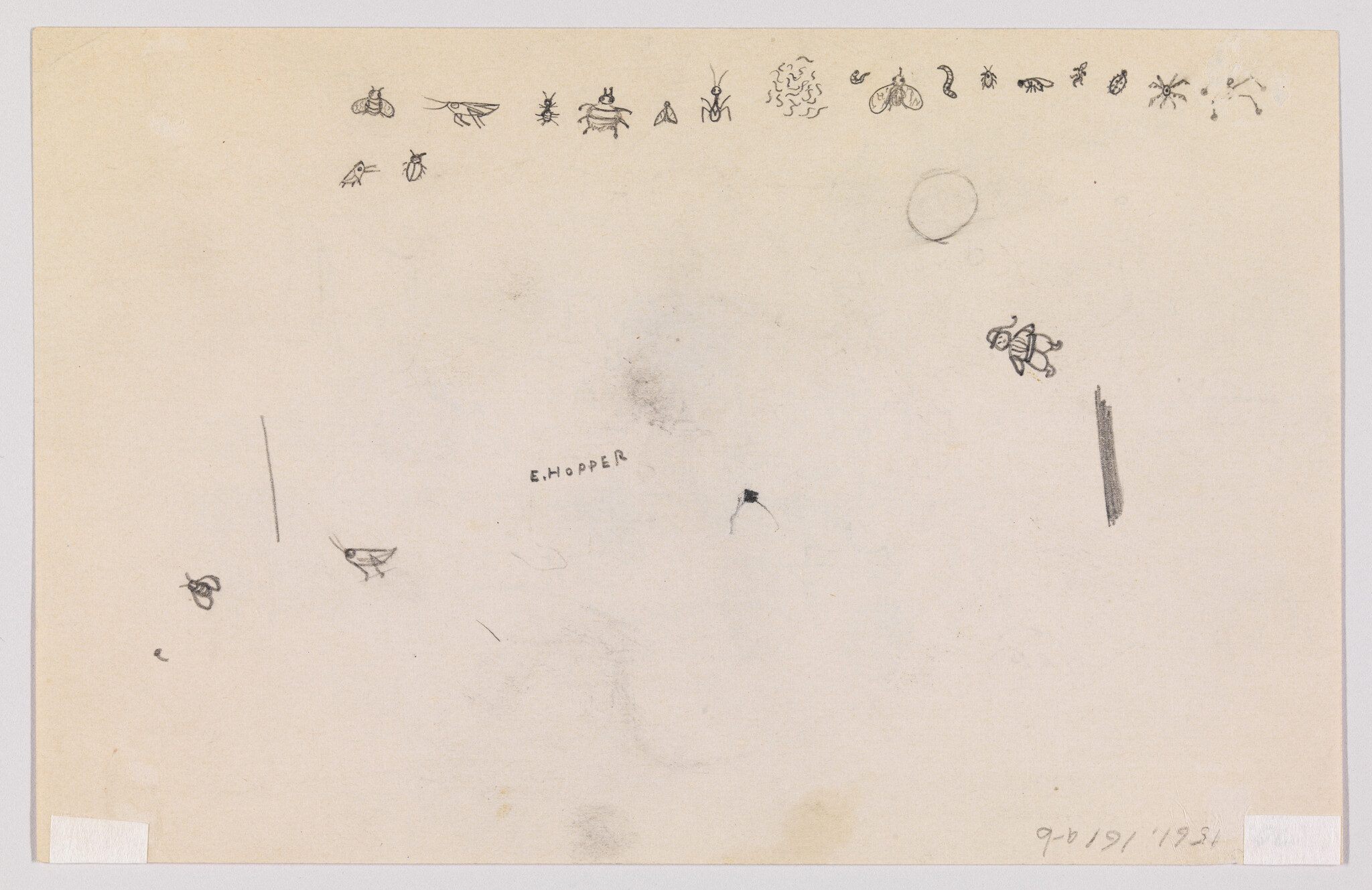Verso: (Sketches of Insects and Figure with Hat)
