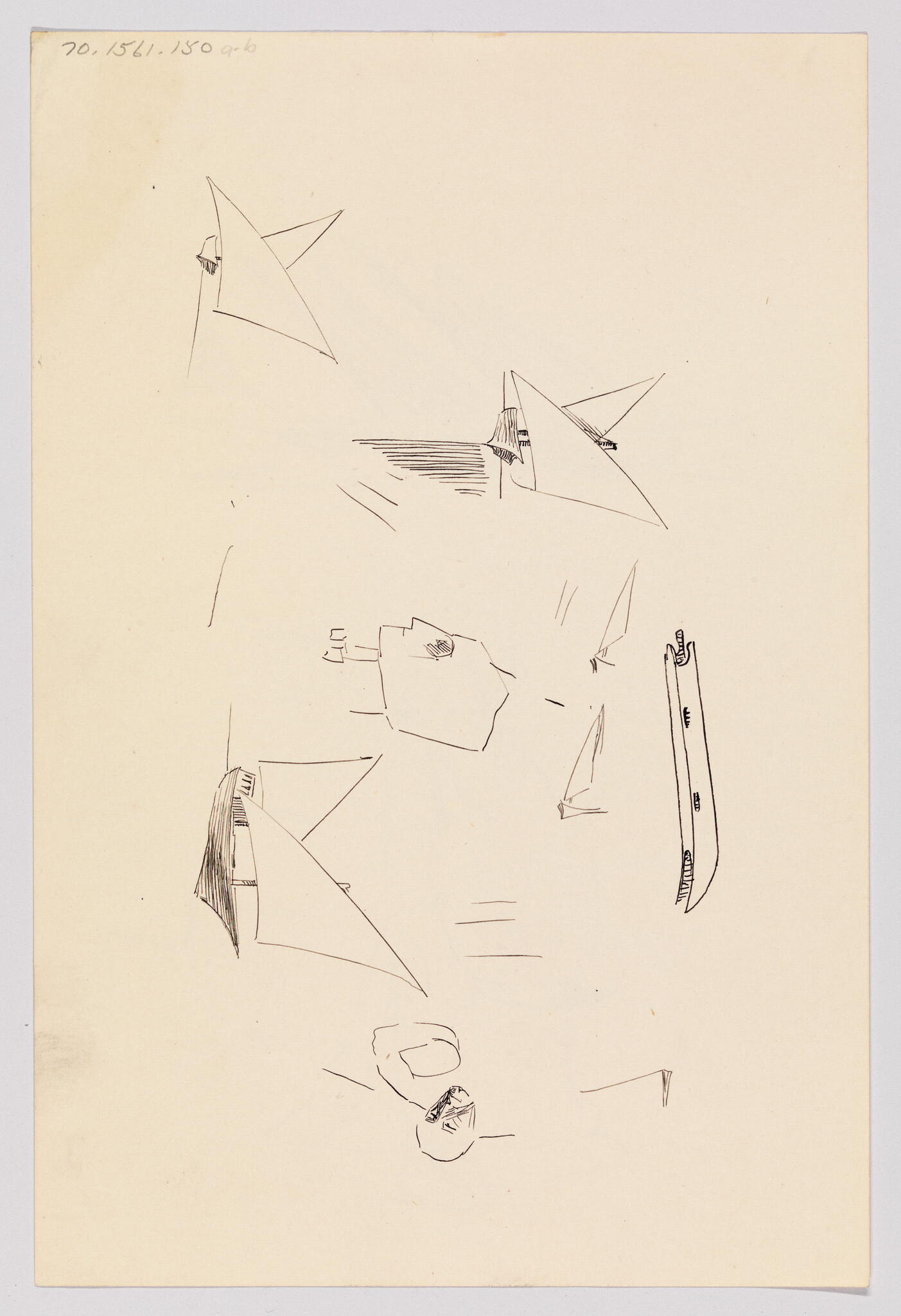 Verso: (Sketches of Boats and Male Head)