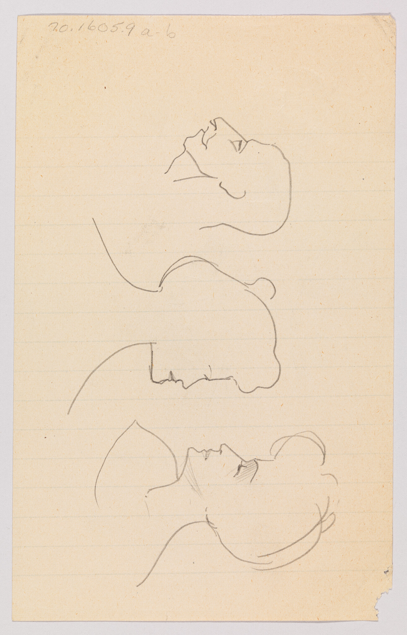 (Three Studies: Man with Moustache and Two Women in Profile)