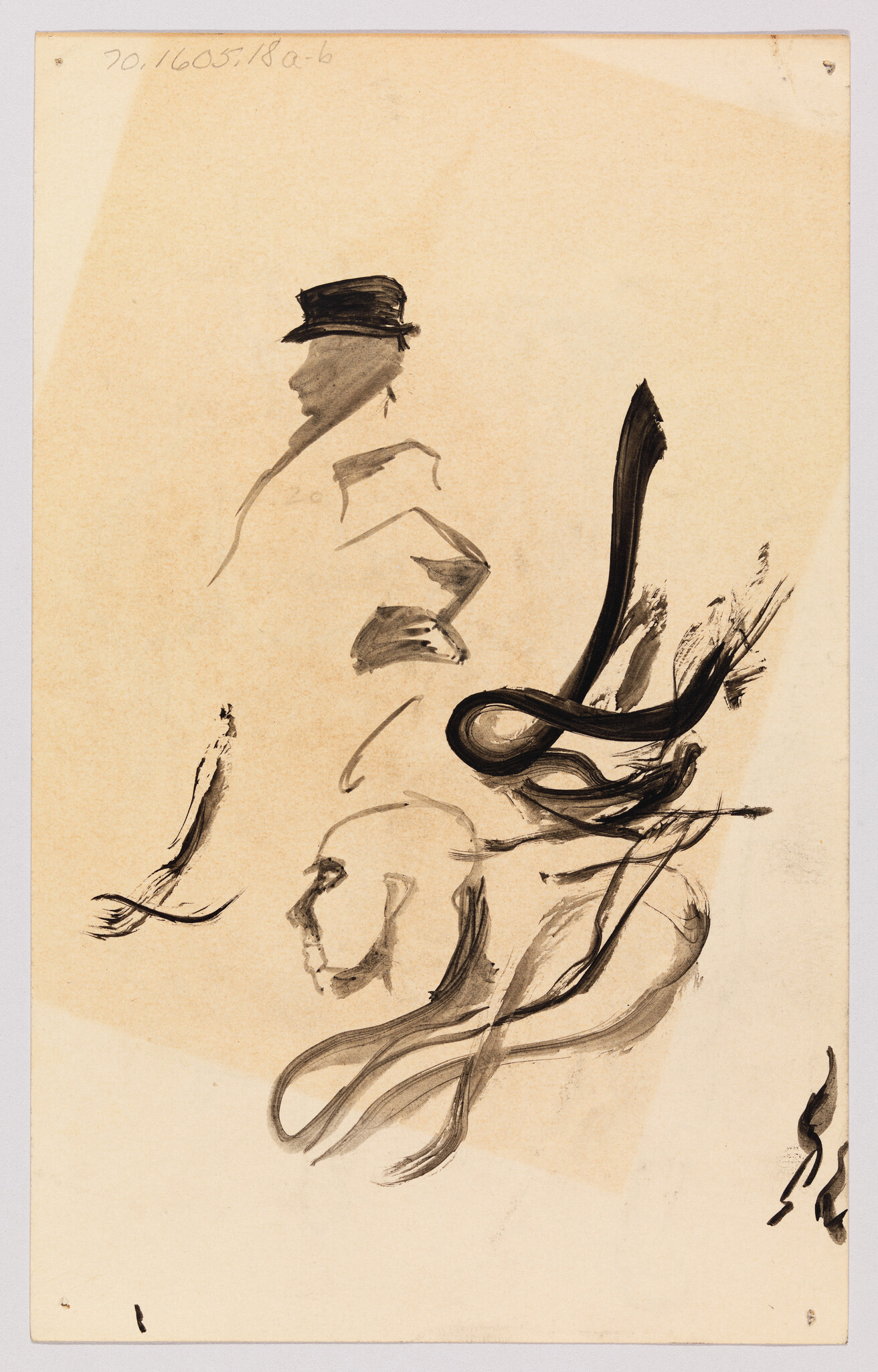 (Sketches of Male Heads in Profile and Abstract Brush and Ink)