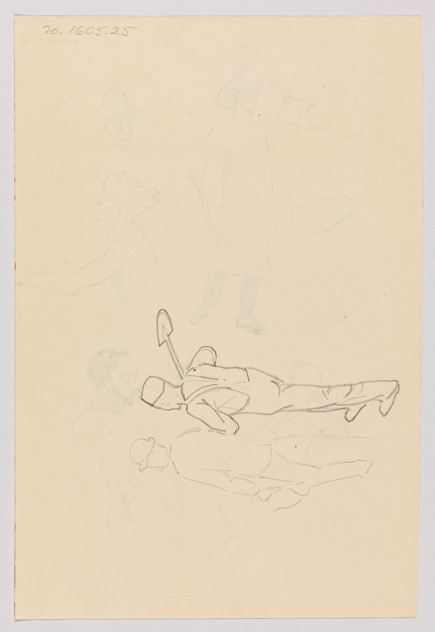 Two Studies: Man in Overalls with Shovel and Man in Suit and Hat with Briefcase)