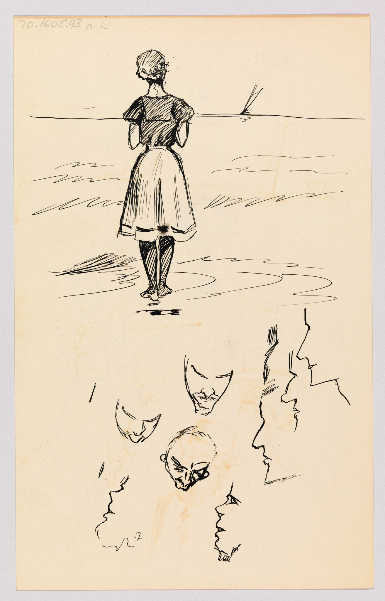 (Sketches of Woman Watching Sailboat and Heads)