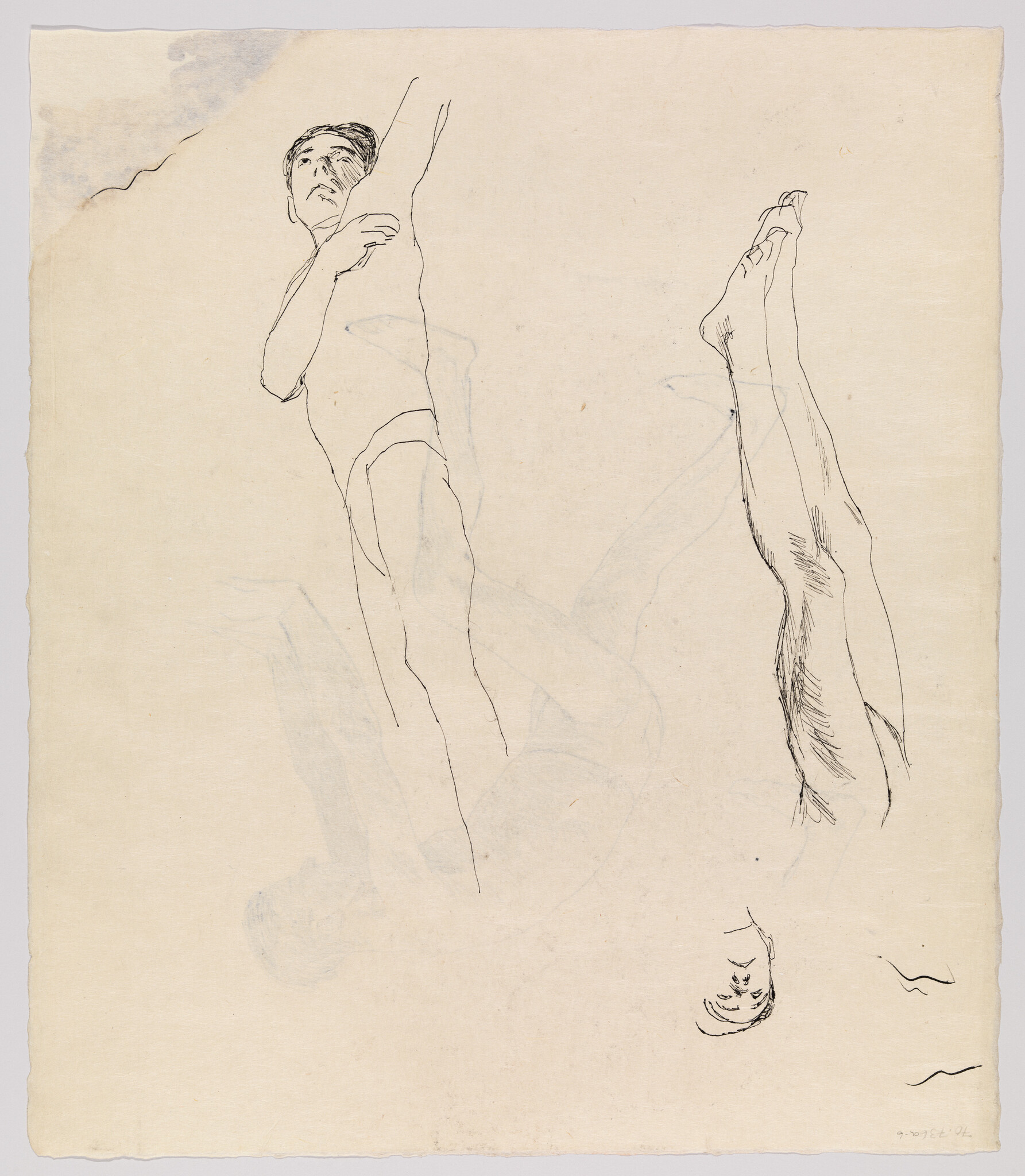 (Bending Male Nude, Profile View, and Study of a Foot)