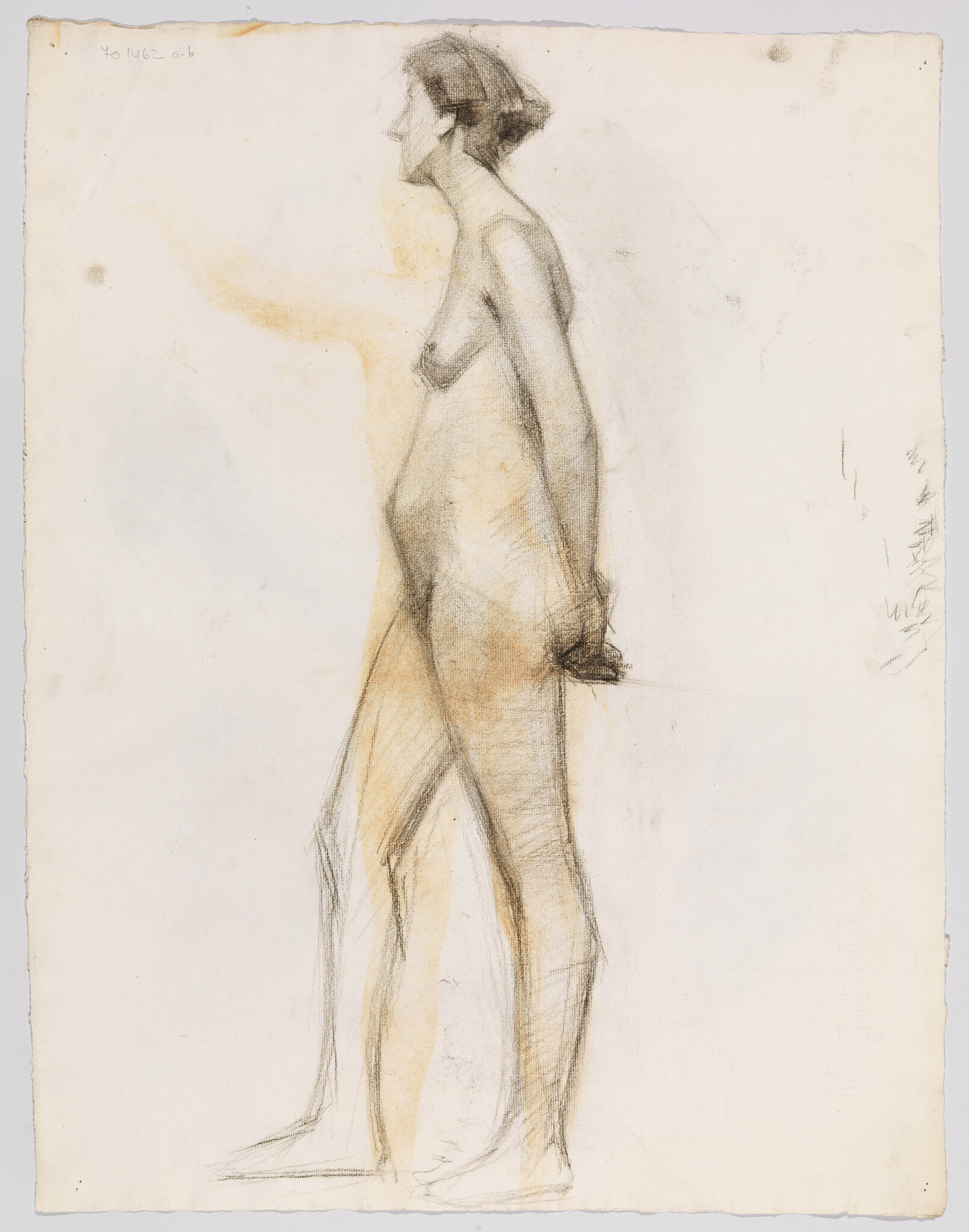 Charcoal, opaque watercolor and graphite pencil on paper (recto); Charcoal on paper (verso)