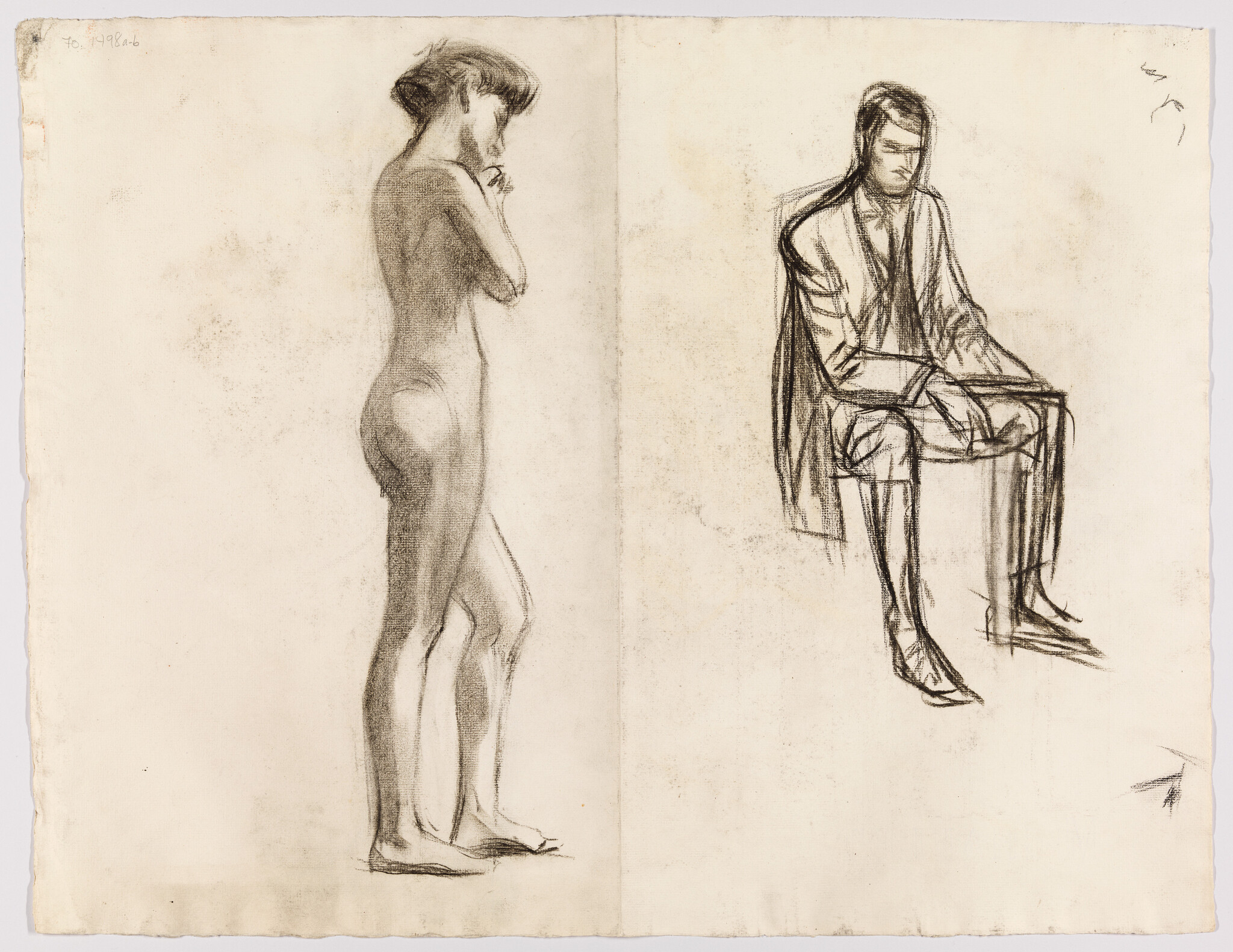 (Two Studies: Standing Female Nude and Seated Man in Suit)