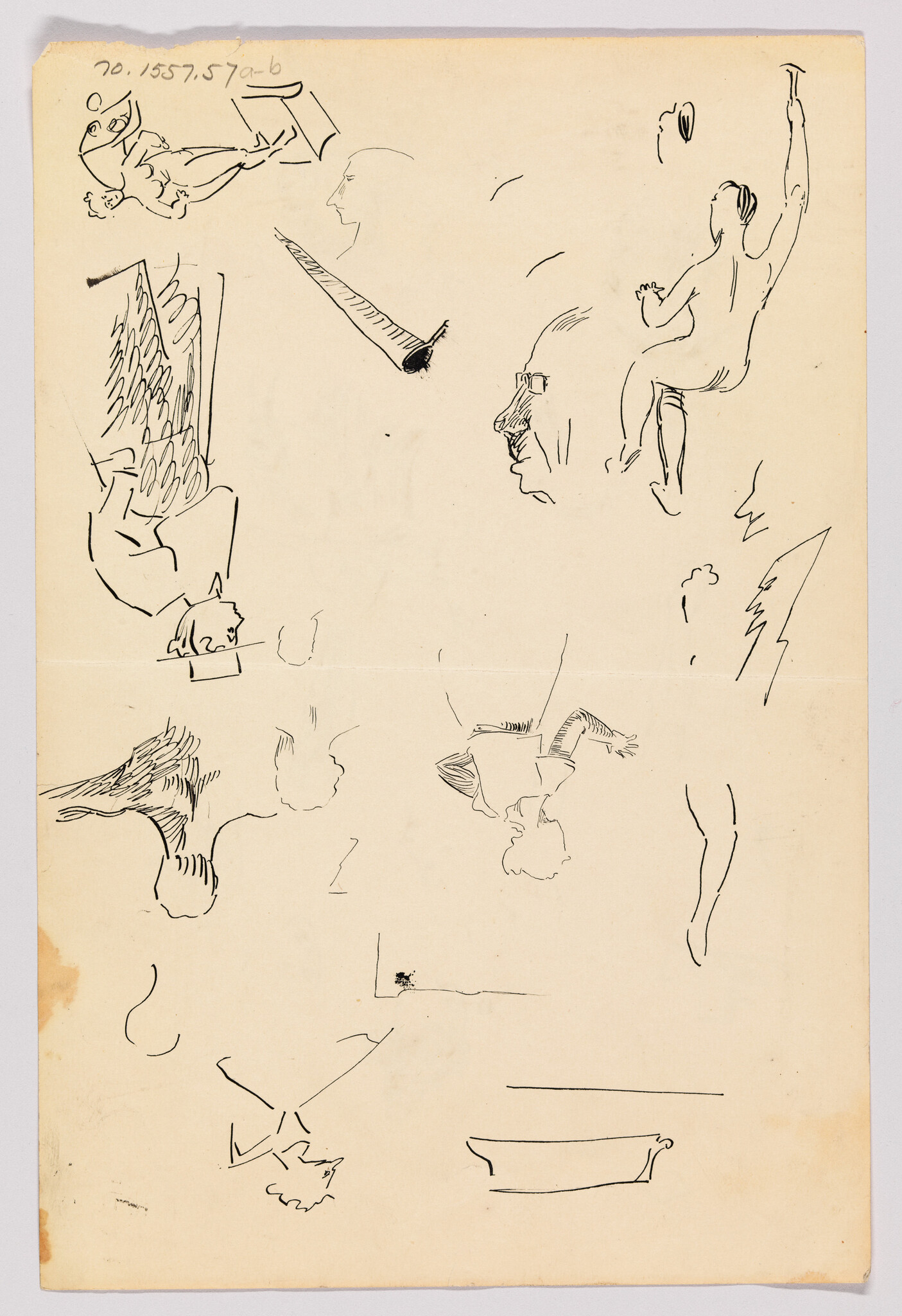 Recto: (Sketches of Caricatures, Arms, and Legs)