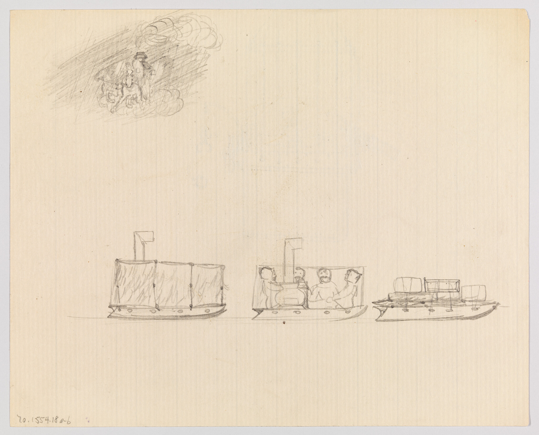 (Two Studies: Fleet of Ships with Sailors and Man on Horseback)
